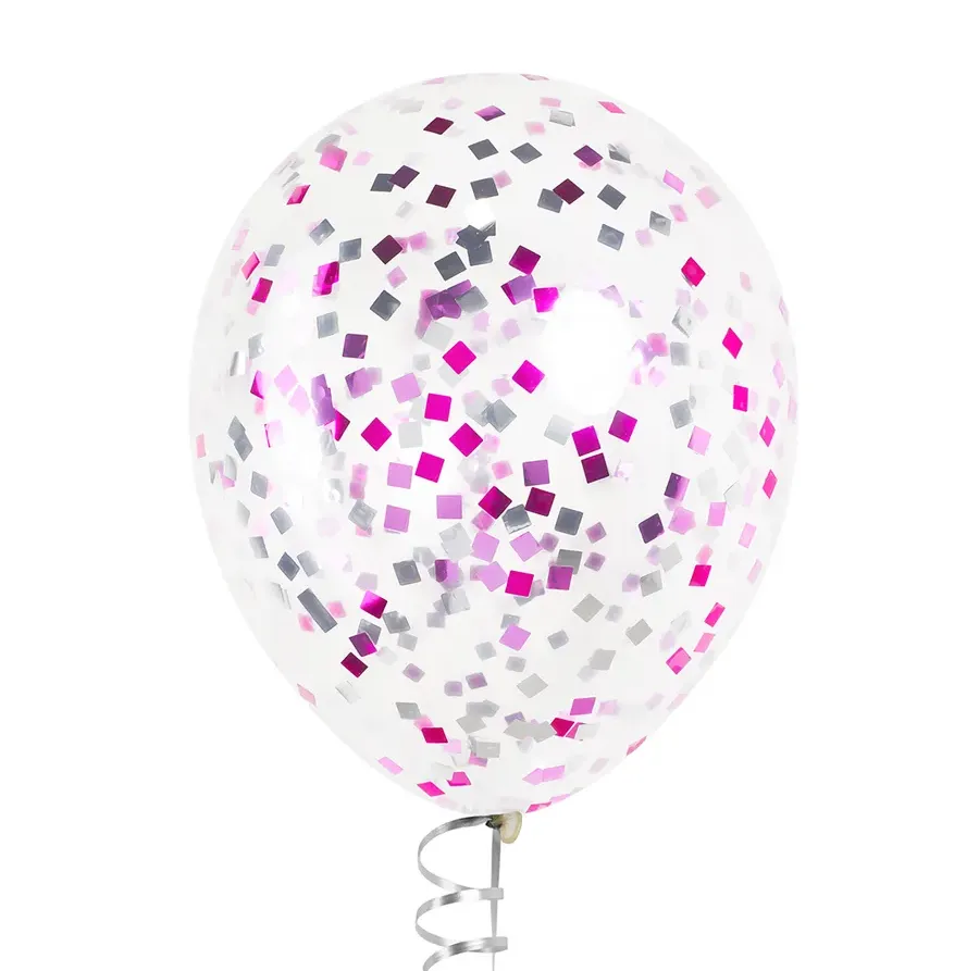 Латексный шар с мелким розовое ассорти конфетти, квадрат, 36 см