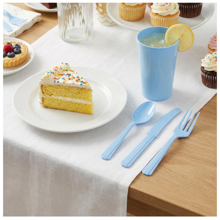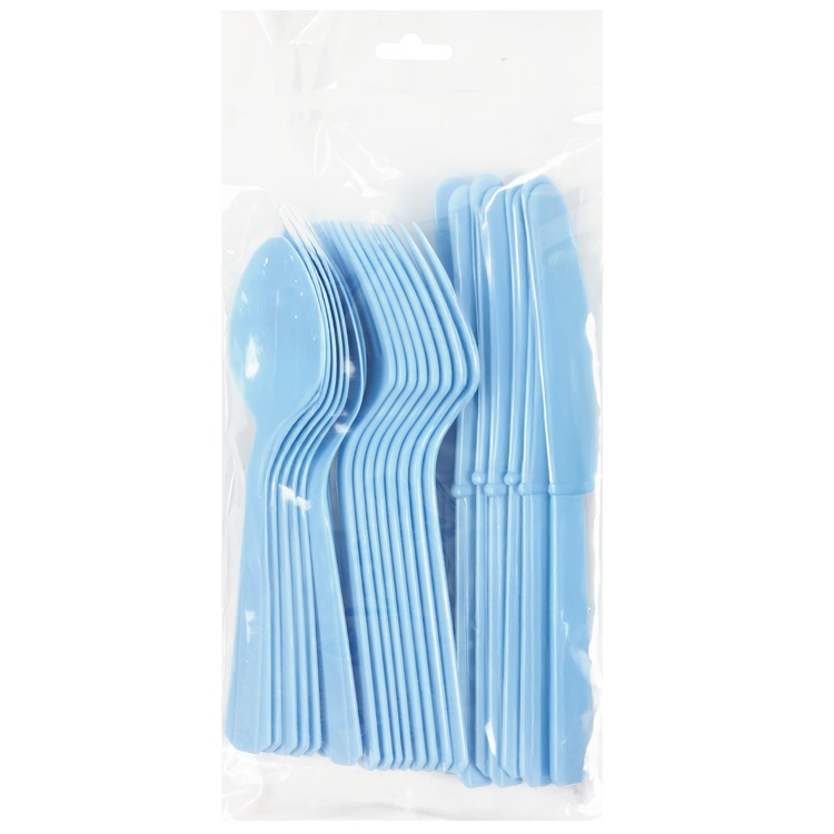 Комплект одноразовых столовых приборов из пластика в нежно-голубом цвете — отличное решение для создания праздничной атмосферы на любом мероприятии. Этот набор подойдёт для свадьбы, вечеринки, пикника или фуршета.