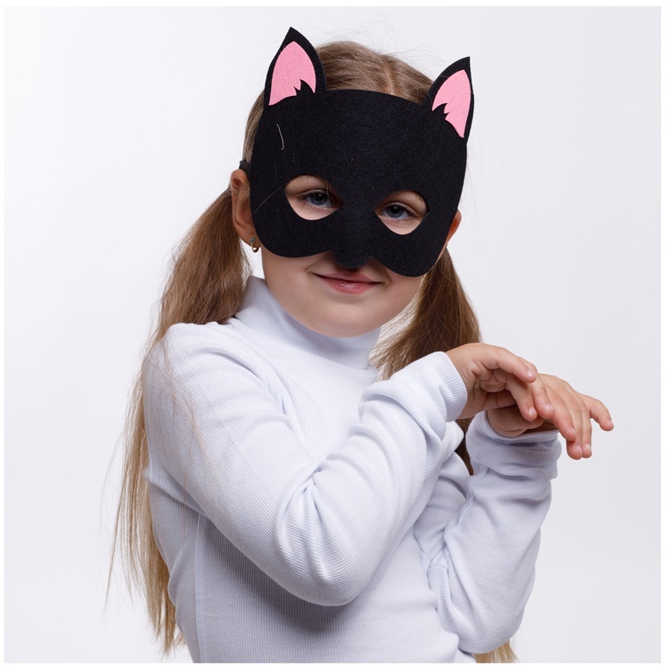 Мягкая и удобная маска в виде кошки станет стильным аксессуаром для детских утренников, праздников и тематических вечеринок.