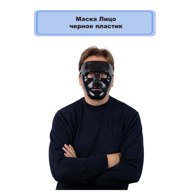 Объемная маска черного цвета, которая закрывает всё лицо. Эффектно смотрится со шляпами такого же цвета или париком с дредами. Маска выполнена из пластика, снабжена прорезями для глаз, носа и рта, крепится на резинке.