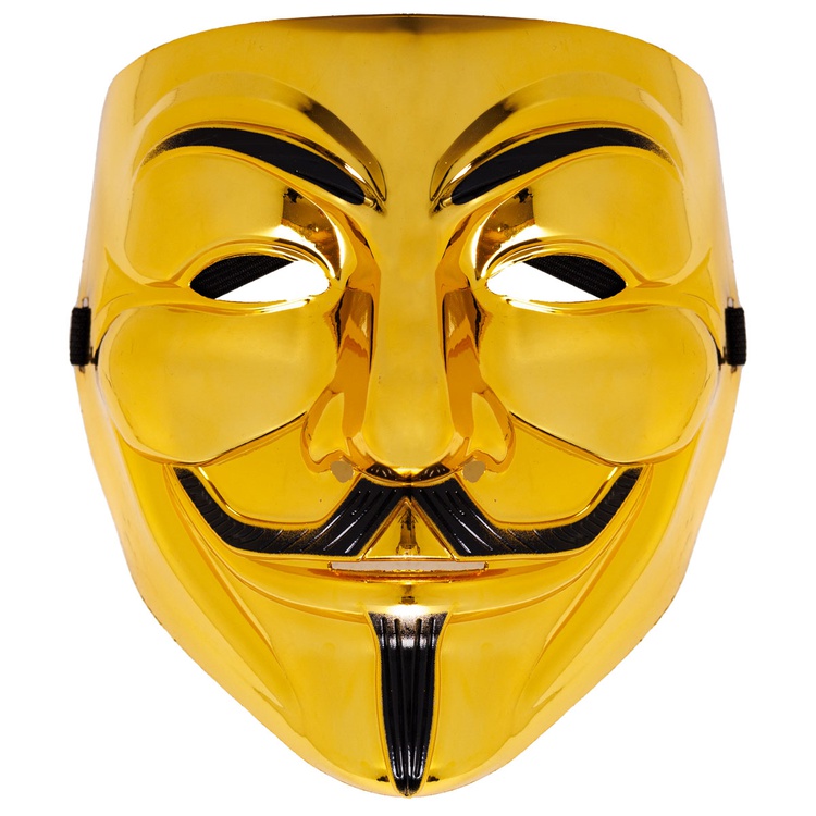 Карнавальный аксессуар для вечеринки Хеллоуин - блестящая золотая пластиковая маска Гая Фокса.