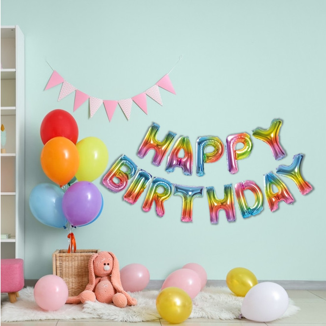 Воздушные шары в виде надписи «Happy Birthday» в радужном градиенте из полимерной плёнки — это отличный выбор для детских игр и развлечений. Они надуваются воздухом и создают весёлую атмосферу.