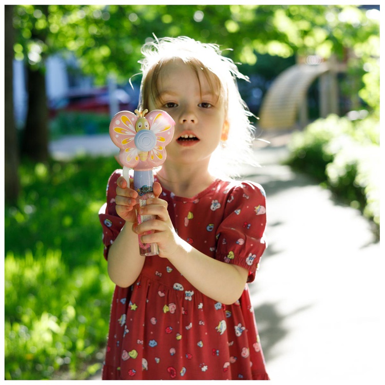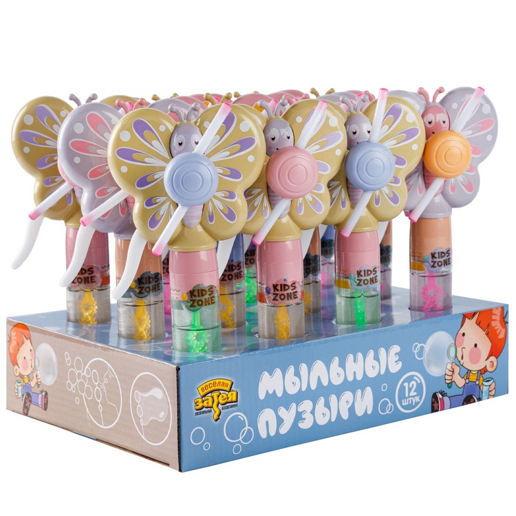 Игрушечный пускатель мыльных пузырей с уникальным дизайном — порхающая бабочка и вращающийся ветерок.