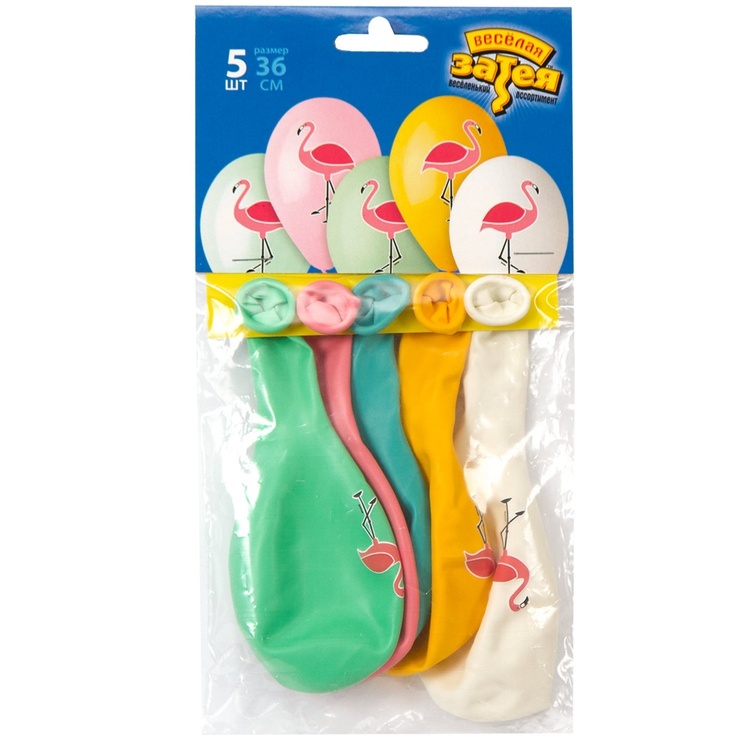 Каждый шар диаметром 36 см, легко надувается воздухом или гелием. В набор входит 5 шаров разного дизайна.