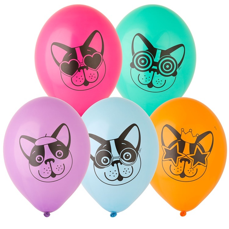 Яркие латексные шары с очаровательным рисунком собак станут стильным украшением праздника.