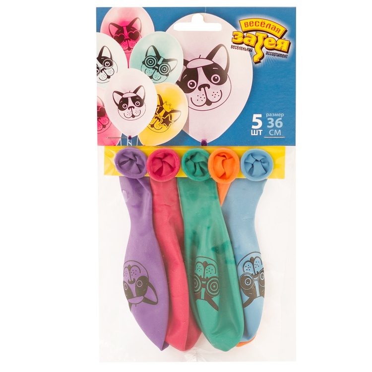 Каждый шар диаметром 36 см, легко надувается воздухом или гелием. В набор входит 5 шаров разного дизайна.