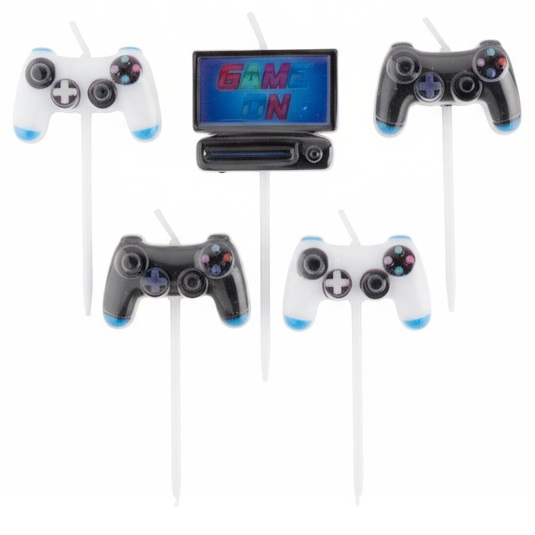 Стильный набор фигурных свечей в виде геймпада — идеальный выбор для украшения торта на детском дне рождения или геймерской тематической вечеринке.