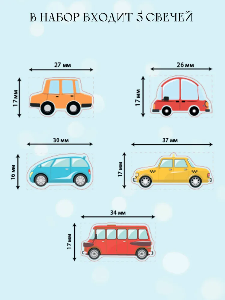 Коллекция фигурных свечей с изображениями ярких машинок добавит динамики и веселья в праздничное оформление торта. Каждая свеча выполнена с тщательной детализацией и насыщенными цветами, создающими ощущение живого движения и радости.