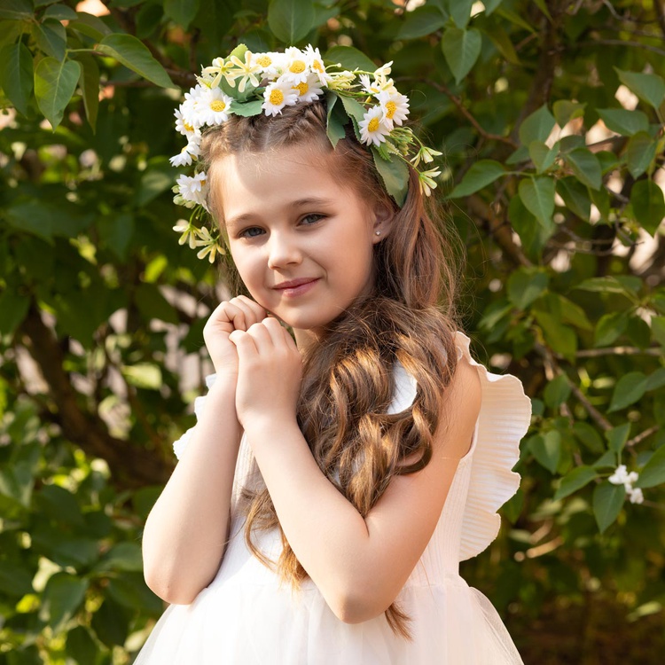 Карнавальный ободок — стильный и яркий головной убор для костюмированной вечеринки. Украшен белыми ромашками.