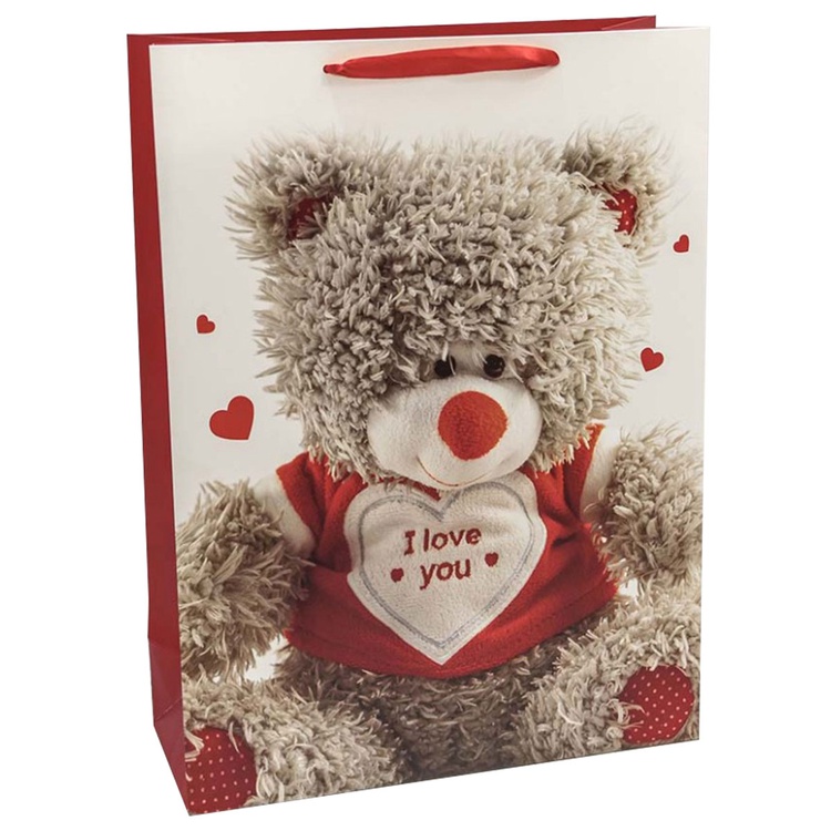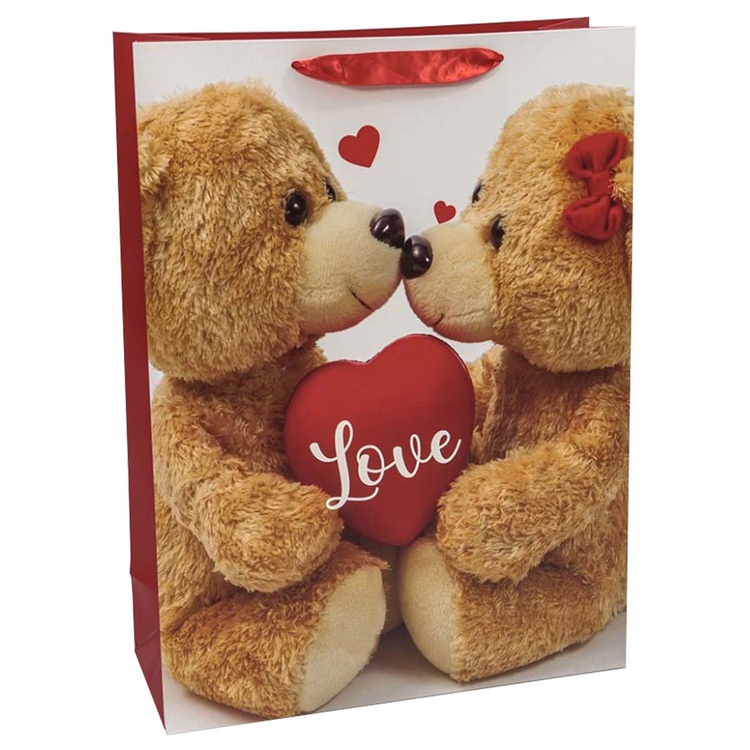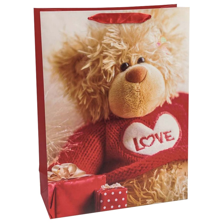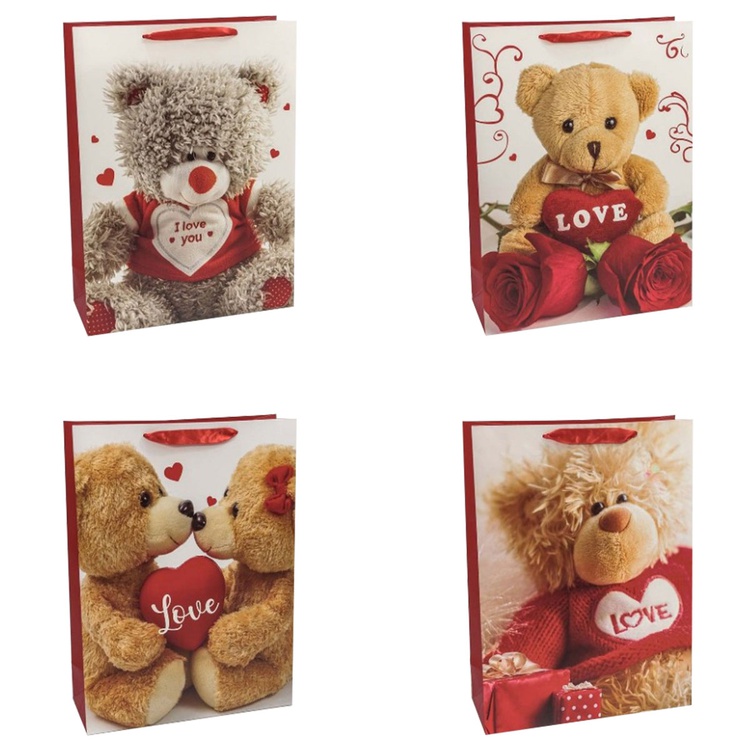 В блоке представлены 4 разных дизайна с изображением сердец и подарков. Пакеты выполнены из плотной бумаги (157 г/м²), что обеспечивает их надёжность и привлекательный внешний вид.