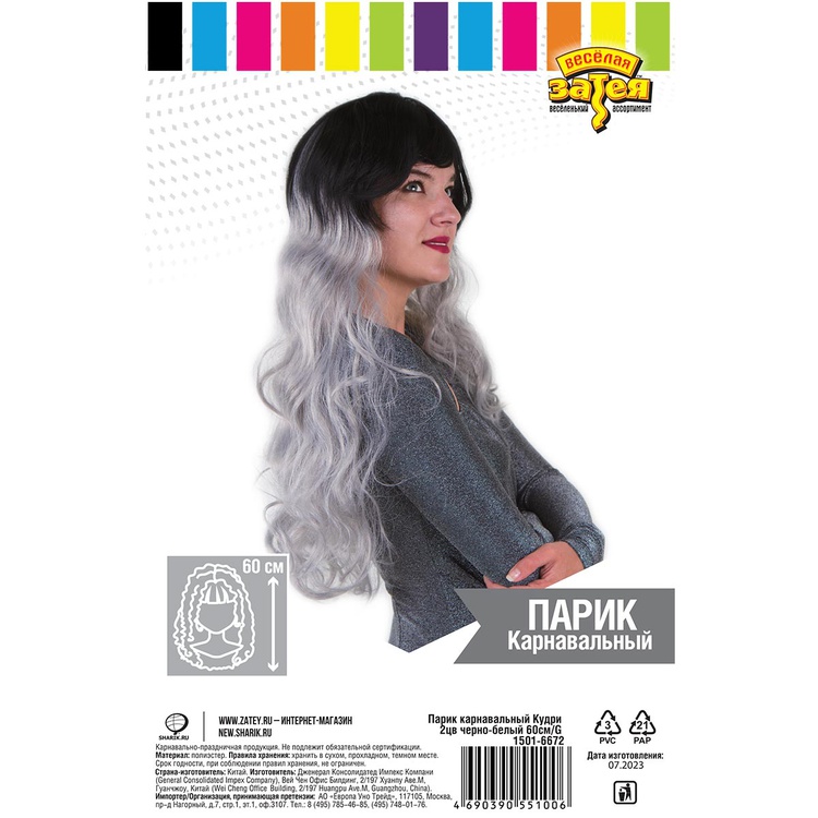 Карнавальный парик из качественных искусственных волос. Длина парика около 60 см, вес 150 гр. Размер – универсальный. Основание парика выполнено из дышащей сетчатой конструкции-эластичной шапочки, благодаря чему парик легко и надежно держится на голове. Для сохранности парик помещен в тонкую сеточку и в пластиковую коробку с европодвесом. С помощью карнавального парика легко создать особенный, запоминающийся образ для любой вечеринки. Преображайтесь, удивляйте и покоряйте!