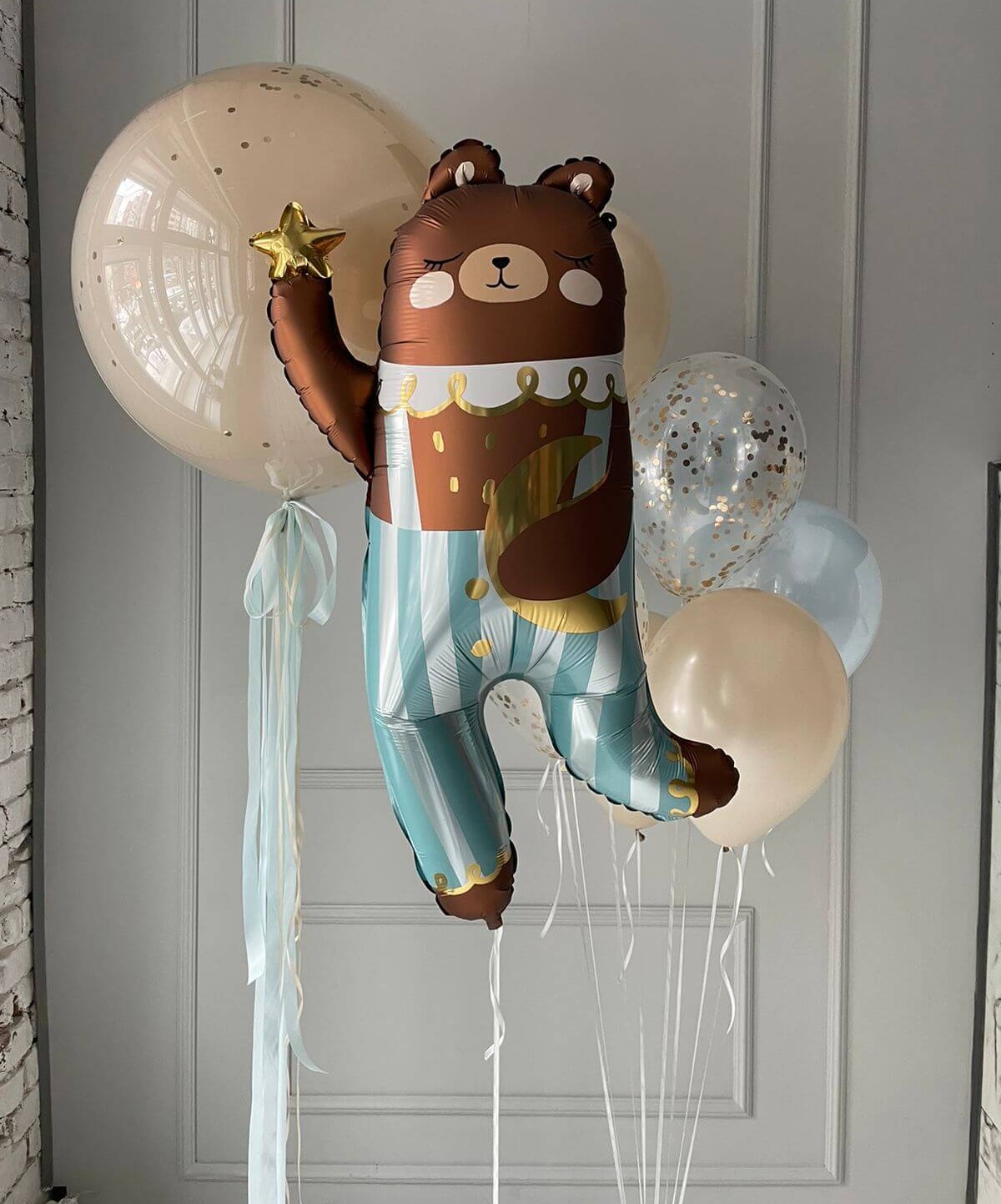 Фольгированный шар «Мишка в штанишках» — это яркий и красивый шар. Отличный выбор для выписки из роддома или в качестве подарка при посещении новорождённого.