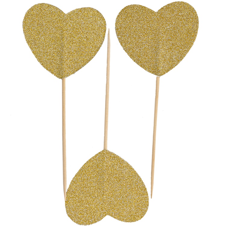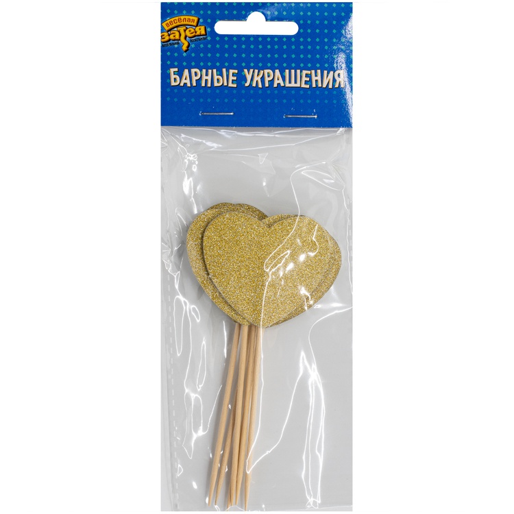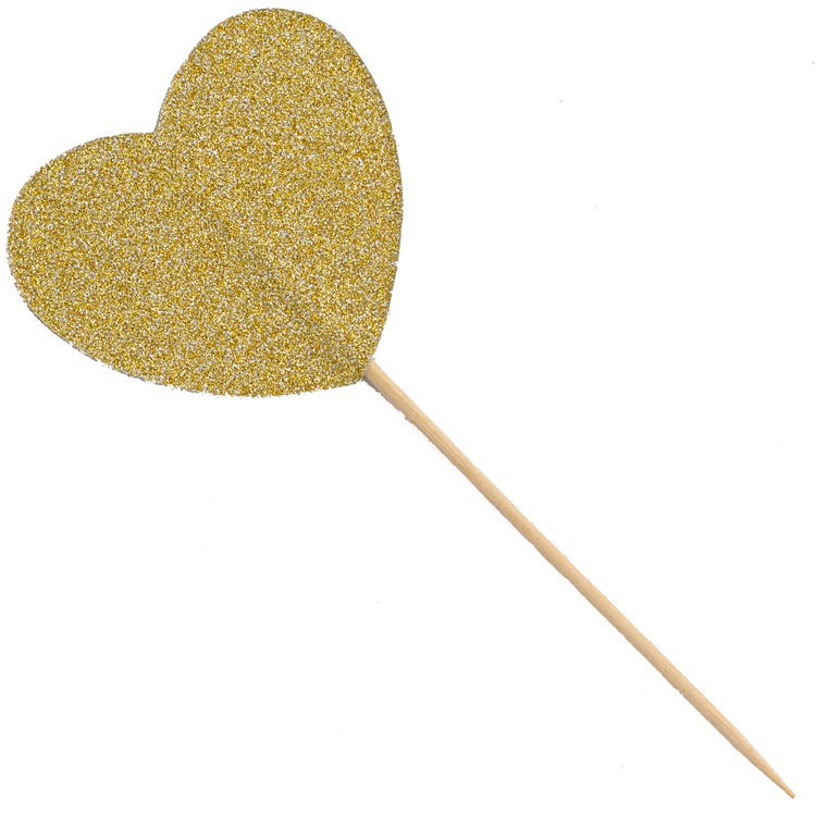 Пики для канапе «Сердце» в золотом цвете — стильный аксессуар для праздничного фуршета. Элегантный дизайн в форме сердца и золотое оформление придадут изысканность вашему столу. Благодаря блестящему глиттеру пики добавят лоска и торжественности мероприятию.