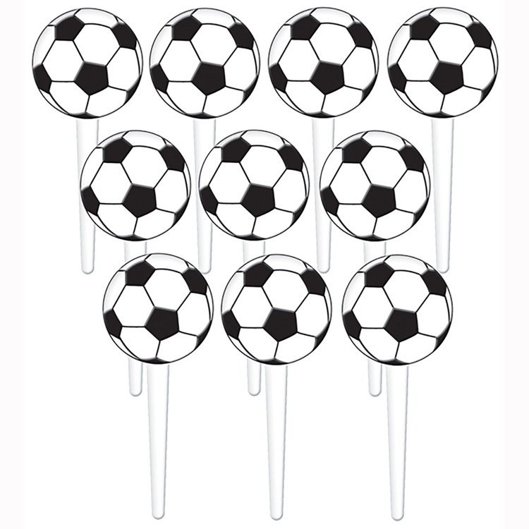 Пики для канапе с футбольными мячами - отличное дополнение стола для праздника дня рождения болельщика и игрока. В упаковке 36 пластмассовых пик высотой 7,6 см.