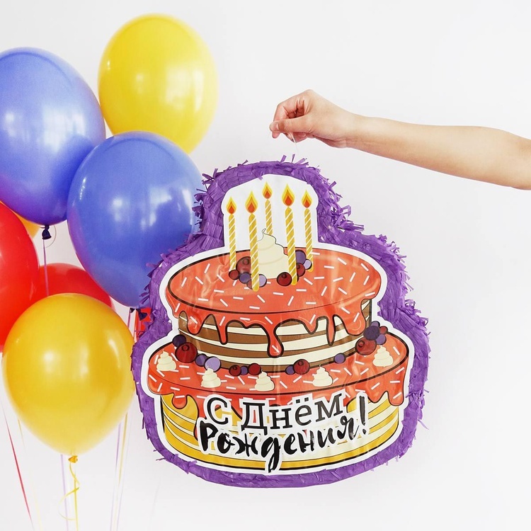 Пиньята — мексиканская традиционная игра для детей и взрослых, выполненная из папье-маше и украшенная праздничным принтом «Торт Праздничный».