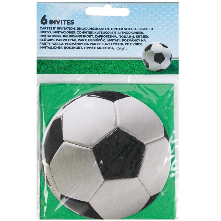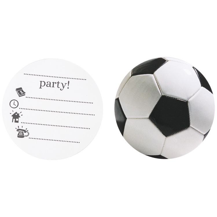 Намечается футбольное соревнование, день рождения у вашего малыша или просто вы решили закатить вечеринку в футбольном стиле? Приглашения с футбольным мячом подойдут для оповещения о вечеринке гостей. На обороте есть картинки календарика, часов, дома и телефона, рядом поля, на которых вся нужная информация заполняется. В наборе 6 шт. Размер приглашения 10 см.