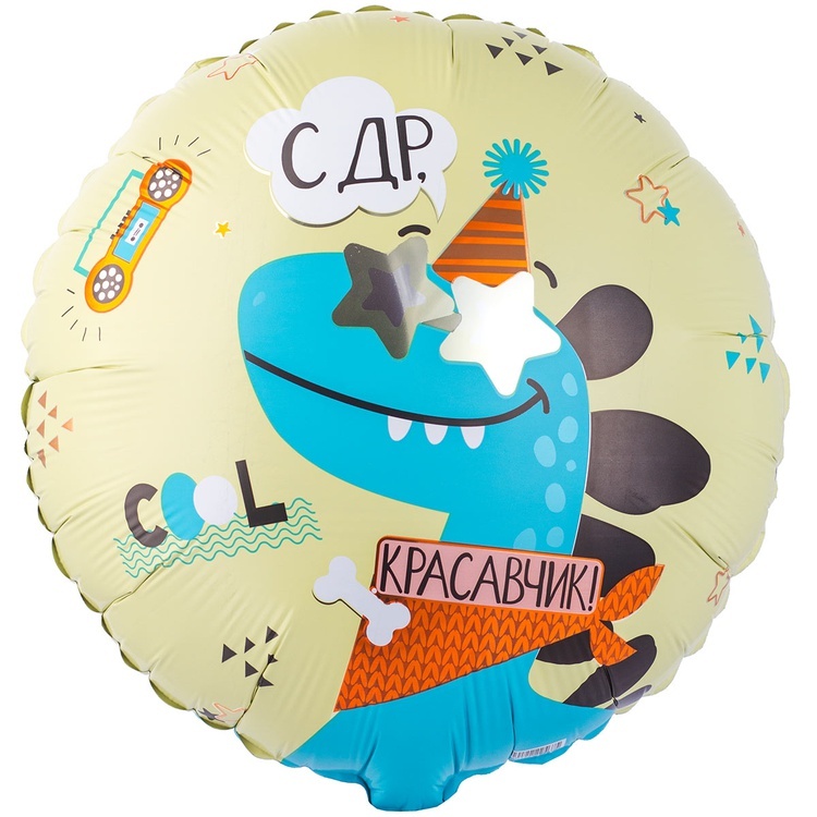 Эффектный фольгированный шар с забавным динозавриком станет выразительным акцентом праздничного оформления. Благородный дизайн подчёркивает особый статус события и гармонично вписывается в торжественный декор, фотозону или композицию из шаров.