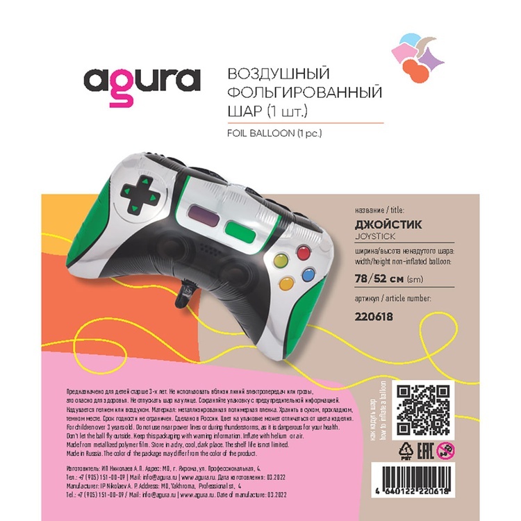 Большой фольгированный шар в форме игрового джойстика — отличный выбор для украшения мероприятий и создания праздничной атмосферы.
