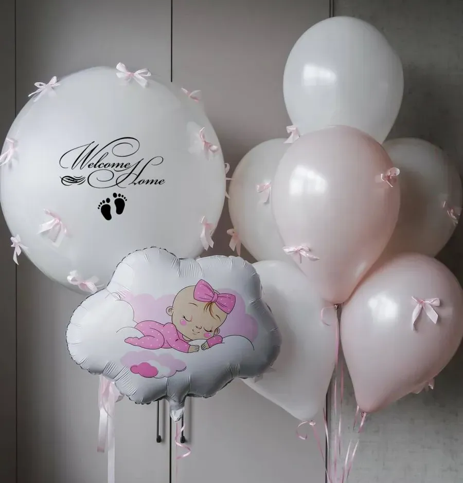 Шар можно подарить на выписку из роддома или использовать как основной элемент в праздничном букете.
