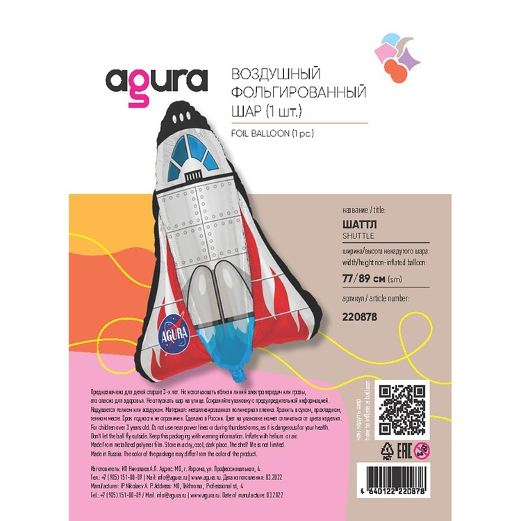 Объемный шар в виде Шаттла станет эффектным украшением праздника или оригинальным подарком.