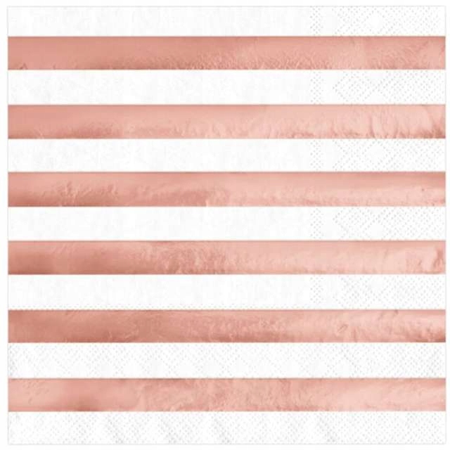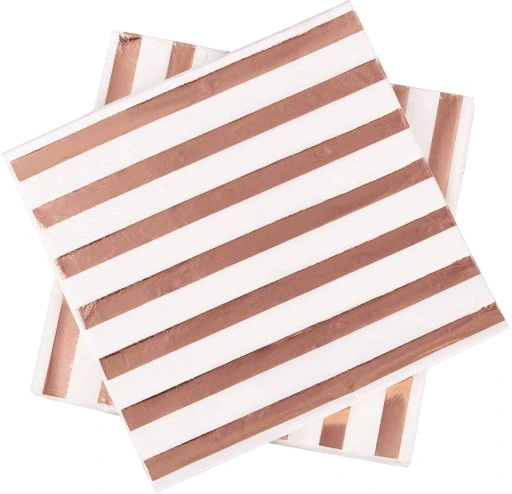 Бумажные салфетки для стильной вечеринки белого цвета фольгированным декором в виде полоски в цвете розовое золото. Универсальный дизайн, подходящий для различных мероприятий.