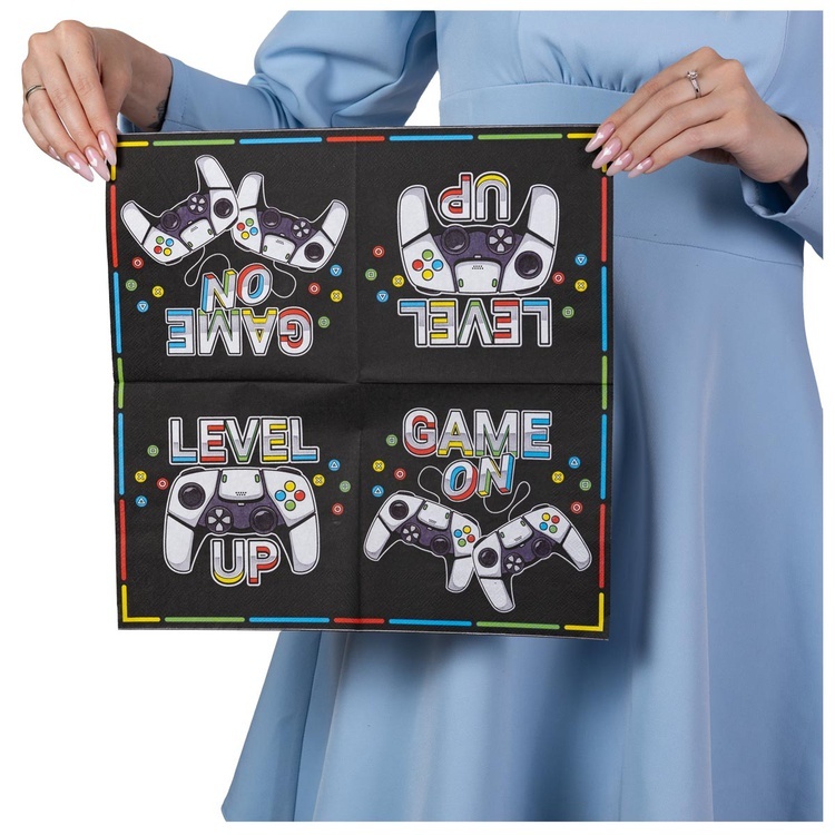 Набор качественных бумажных салфеток из коллекции «Геймер» создаёт атмосферу заботливо продуманного праздника.