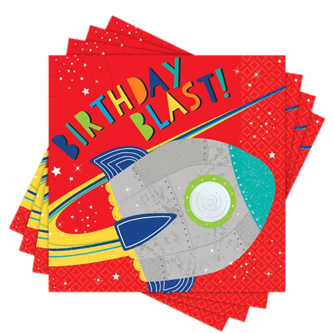Набор качественных бумажных салфеток в красном цвете из коллекции «Космос» создаёт атмосферу заботливо продуманного праздника.
