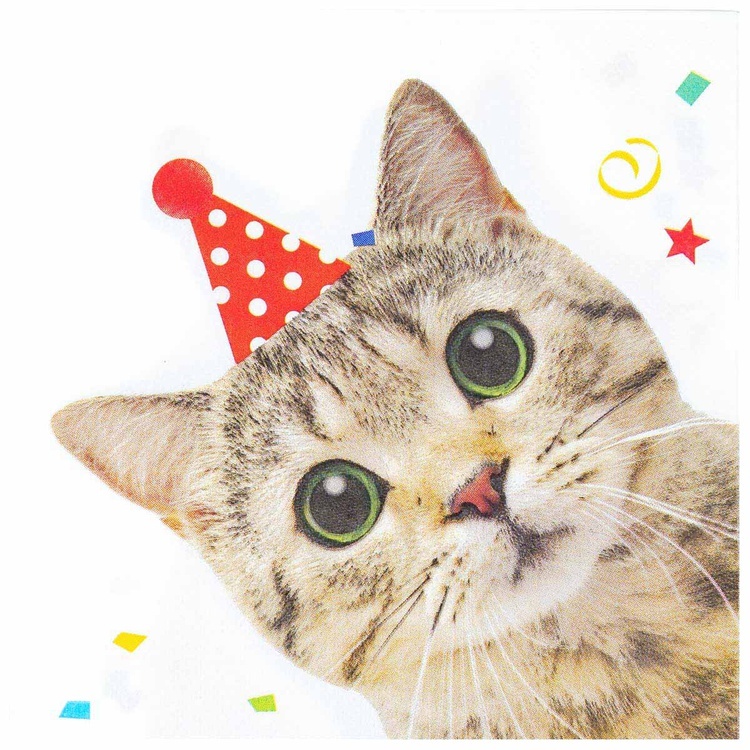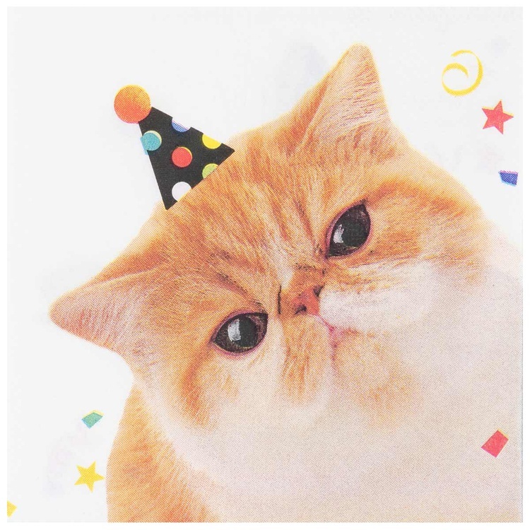 Набор качественных бумажных салфеток с веселыми фотографиями котиков создаёт атмосферу заботливо продуманного праздника.