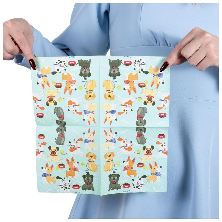 Набор качественных бумажных салфеток с милыми собачками создаёт атмосферу заботливо продуманного праздника.