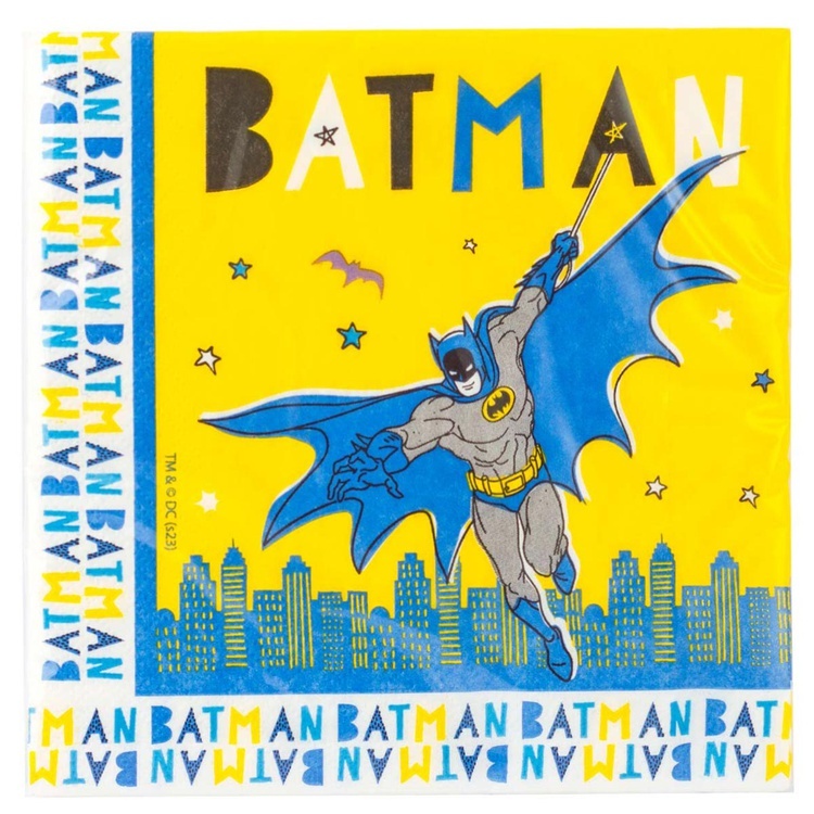 Набор качественных бумажных салфеток с супергероем Бэтмен из коллекции «Бэтмен» создаёт атмосферу заботливо продуманного праздника.