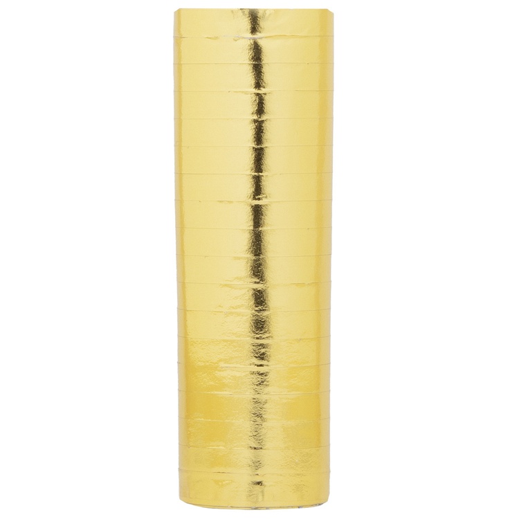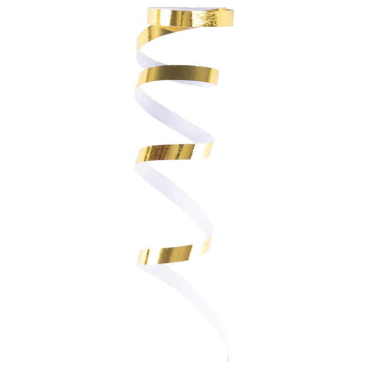 Золотые фольгированные ленты, свернутые в рулончики. Их бросают в публику во время праздников, балов и маскарадов, либо развешивают в местах проведения празднеств. Серпантин уместен на торжестве любого формата. Длина серпантинной ленты - 350см.