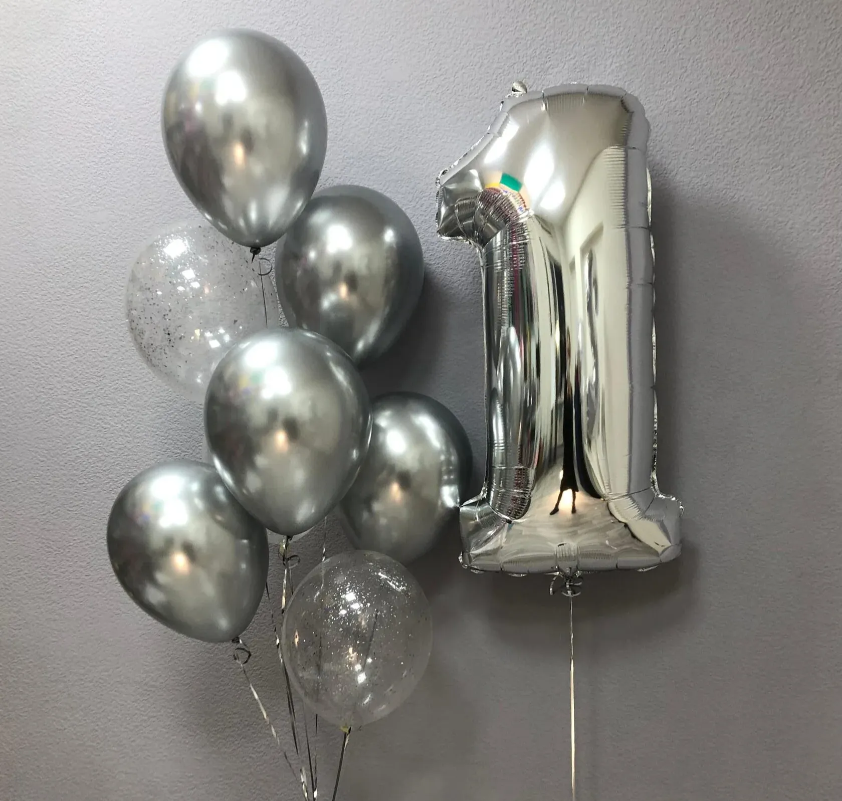 - Латексные шары хромированные, 36 см — 5 шт., цена — 1250.