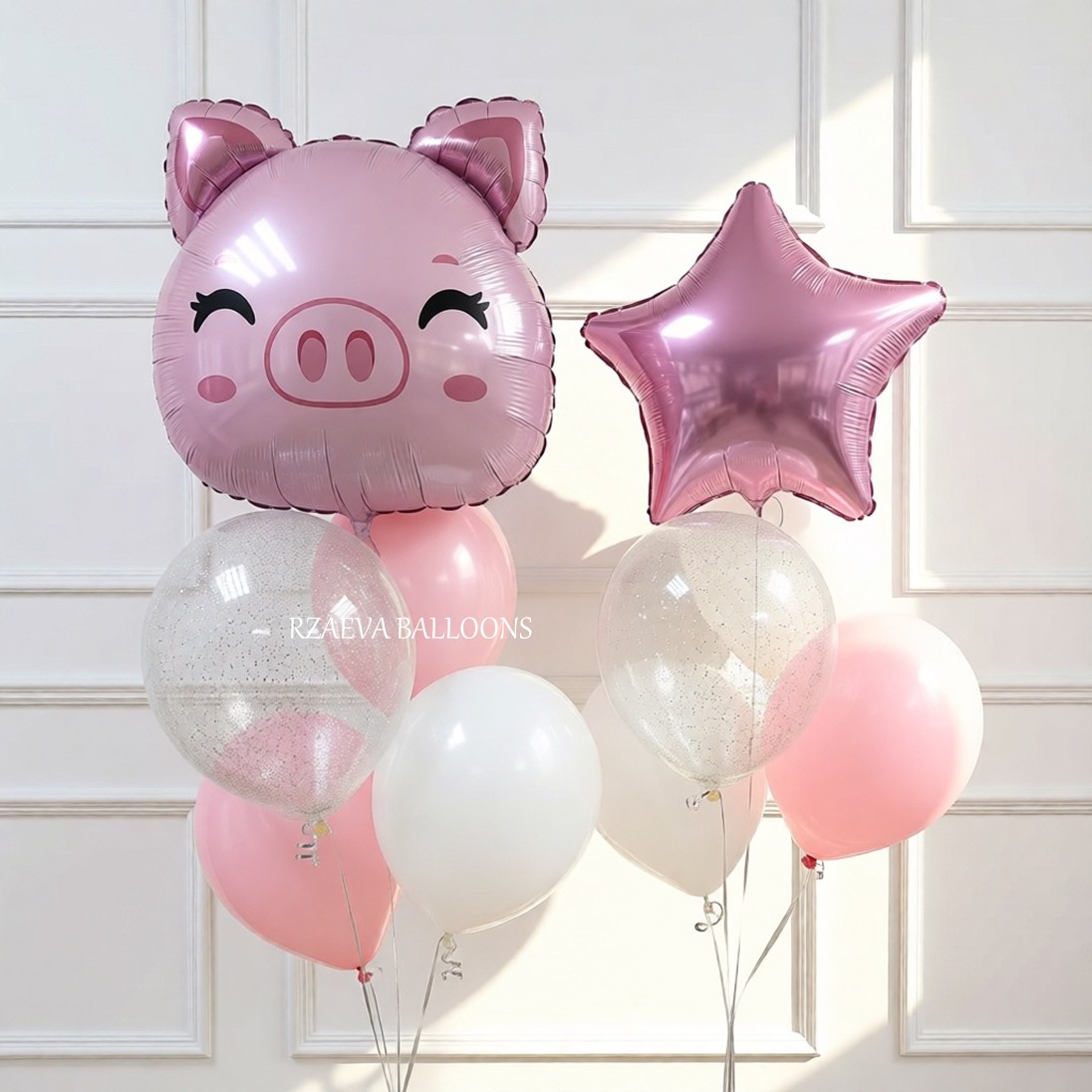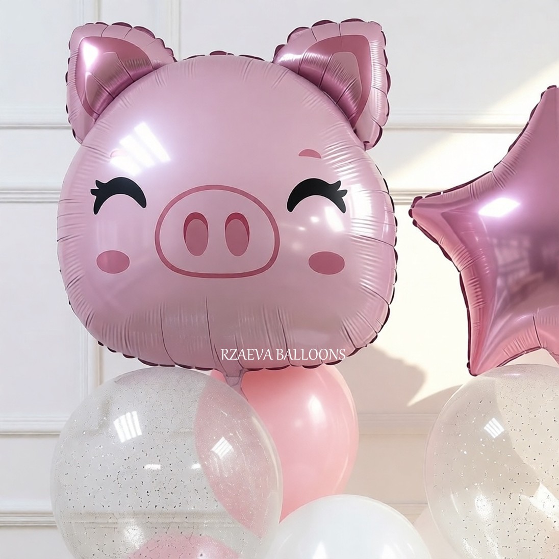 - Фольгированный шар-фигура «Поросенок», 61 см — 1 шт., цена — 1100;