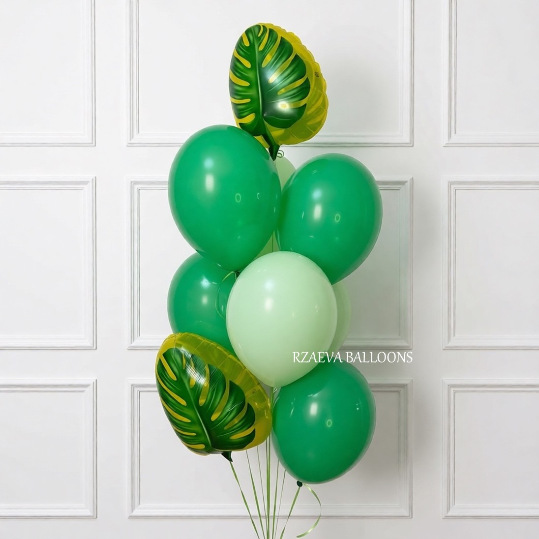 - Фольгированный шар-фигура «Тропический лист», 46 см — 2 шт., цена — 900;
