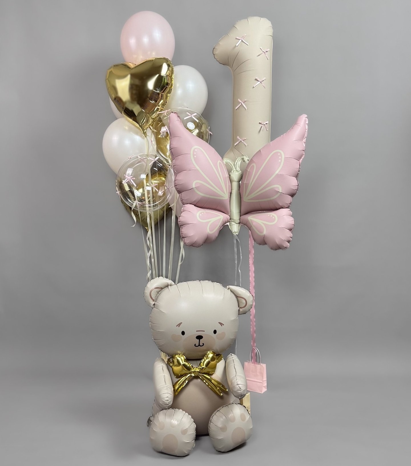 - Фольгированная цифра с бантиками, 102 см — 1 шт., цена — 1400.