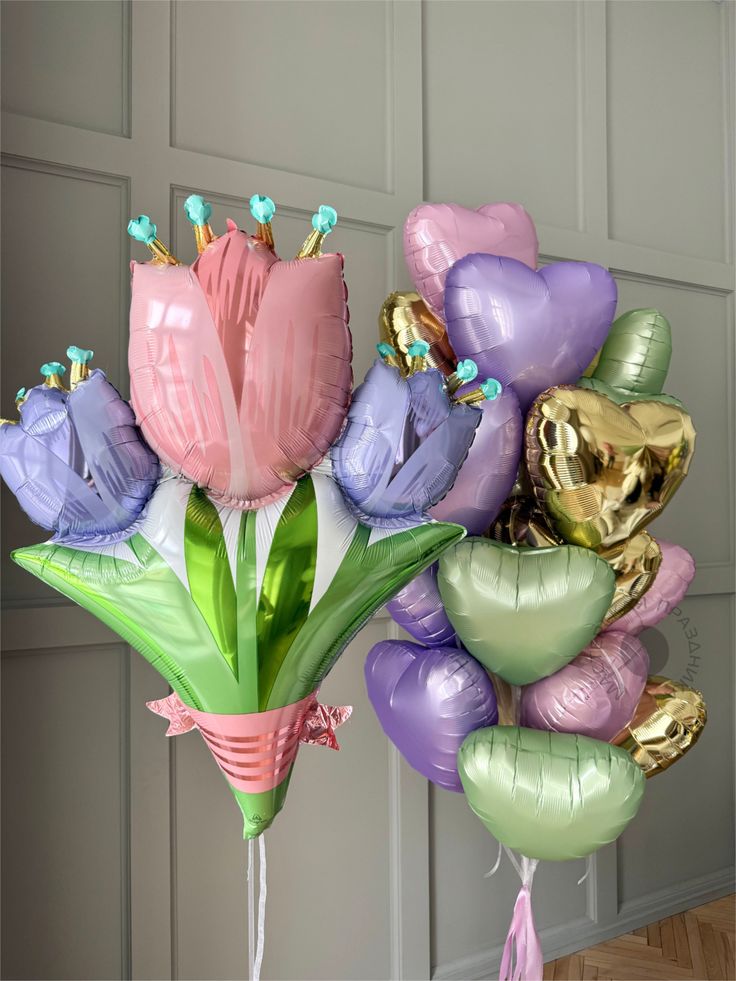 - Фольгированный шар-фигура «Тюльпаны», 117 см — 1 шт., цена — 1400.