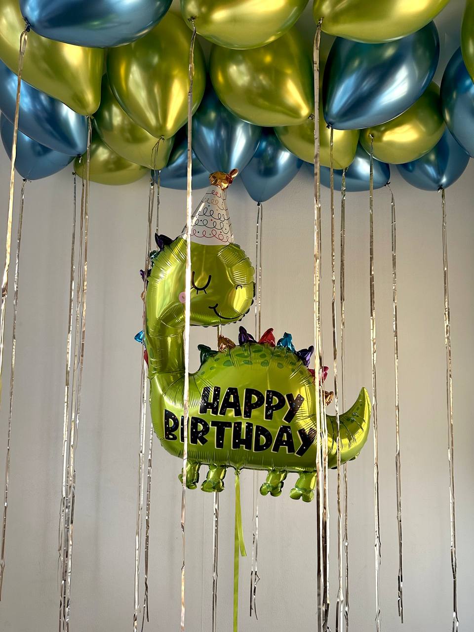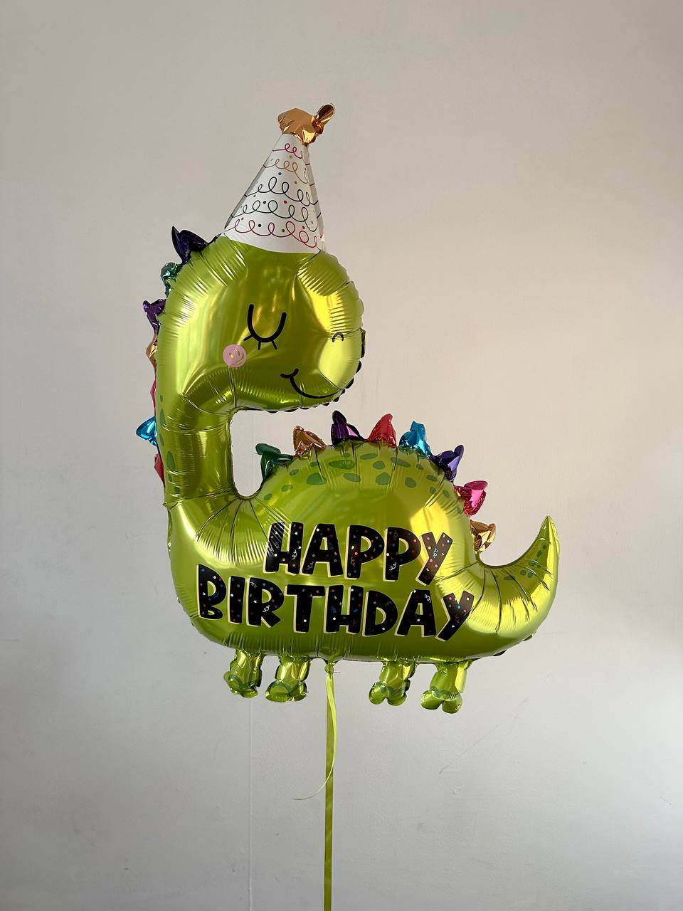 - Фольгированный шар-фигура «Динозаврик в колпачке», 90 см— 1 шт., цена — 1600.