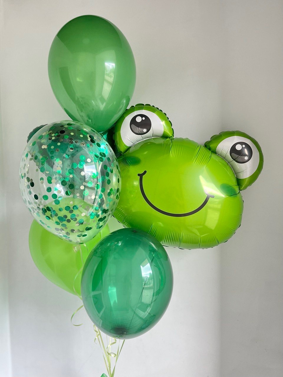 - Фольгированный шар-фигура «Лягушка», 69 см — 1 шт., цена — 1100.;