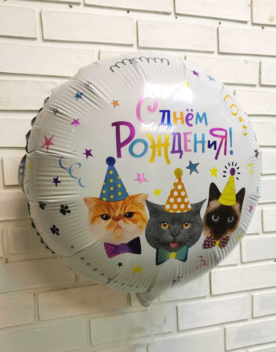 Объемный фольгированный шар с милыми котиками станет стильным акцентом вашего праздника.