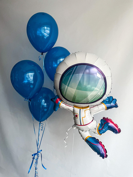 Объемный шар в виде космонавта в невесомости станет эффектным украшением праздника или оригинальным подарком.