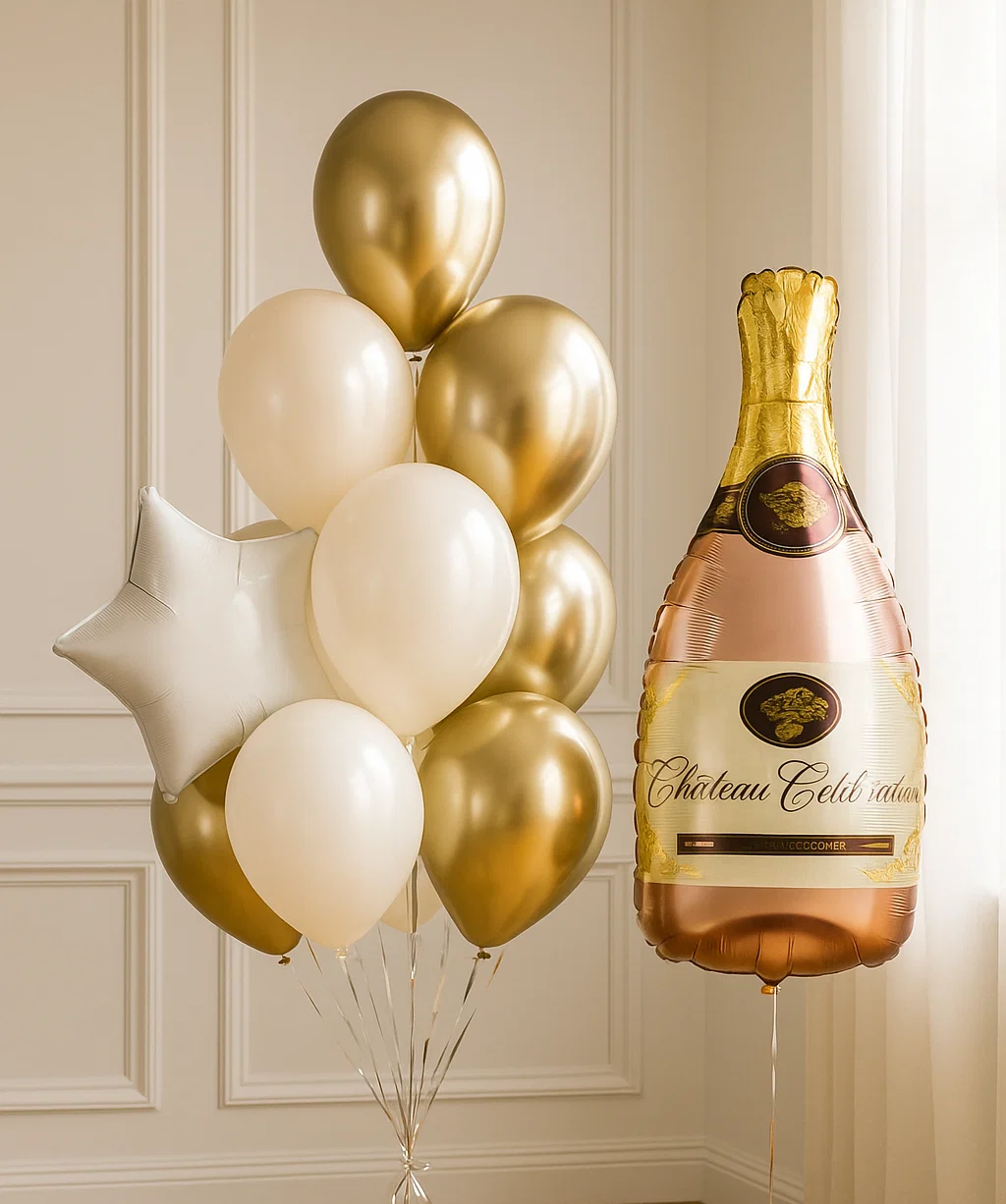 Фольгированный шар в форме бутылки шампанского с надписью — это стильный воздушный шар, выполненный из качественной полимерной плёнки. Он станет ярким и запоминающимся элементом для любого праздника.