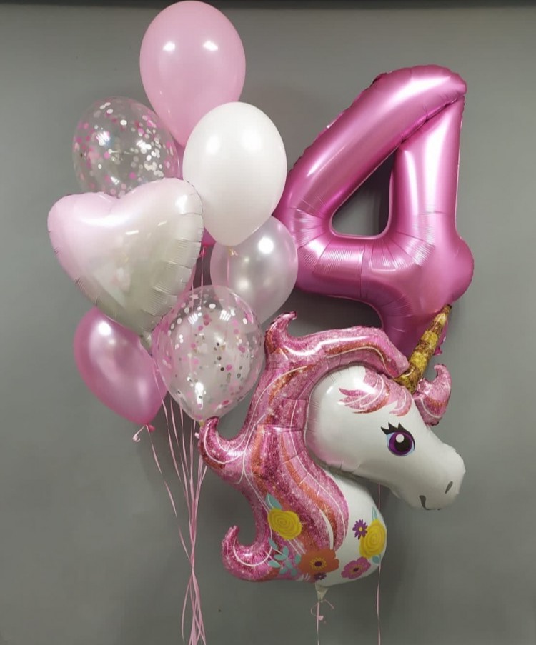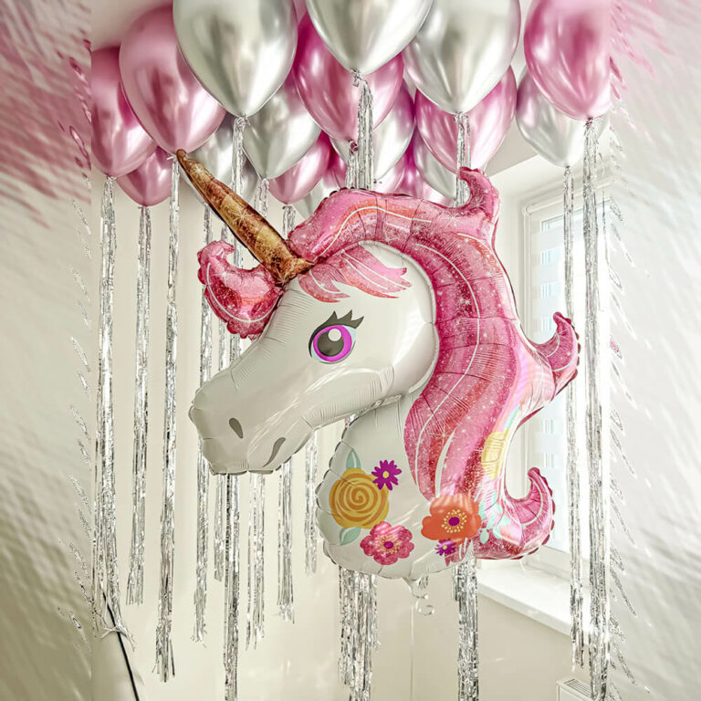 Фольгированная фигура в виде головы единорога — это милый и стильный элемент для детских праздников, дней рождения и фотозон.