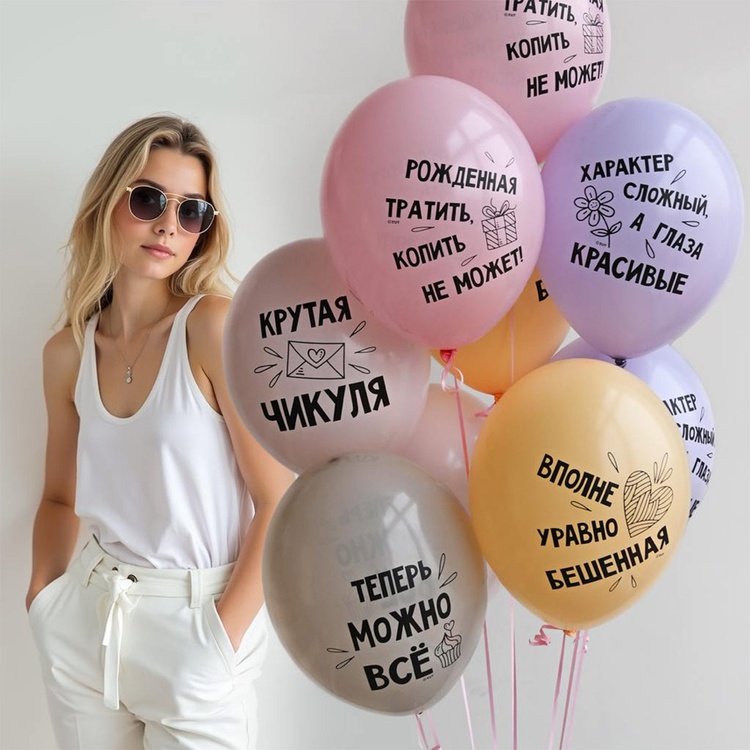Латексный шар с оригинальным рисунком — яркое украшение торжества. Его изящная форма и насыщенный цвет создают утончённую атмосферу.