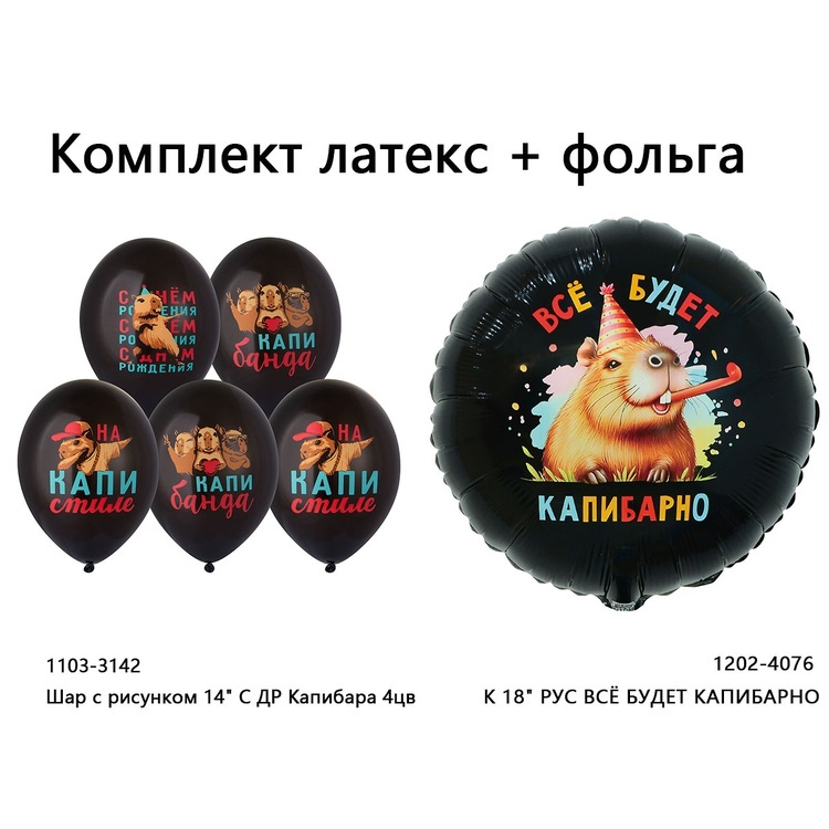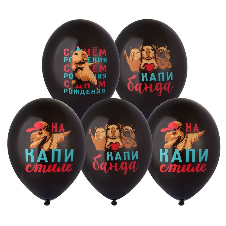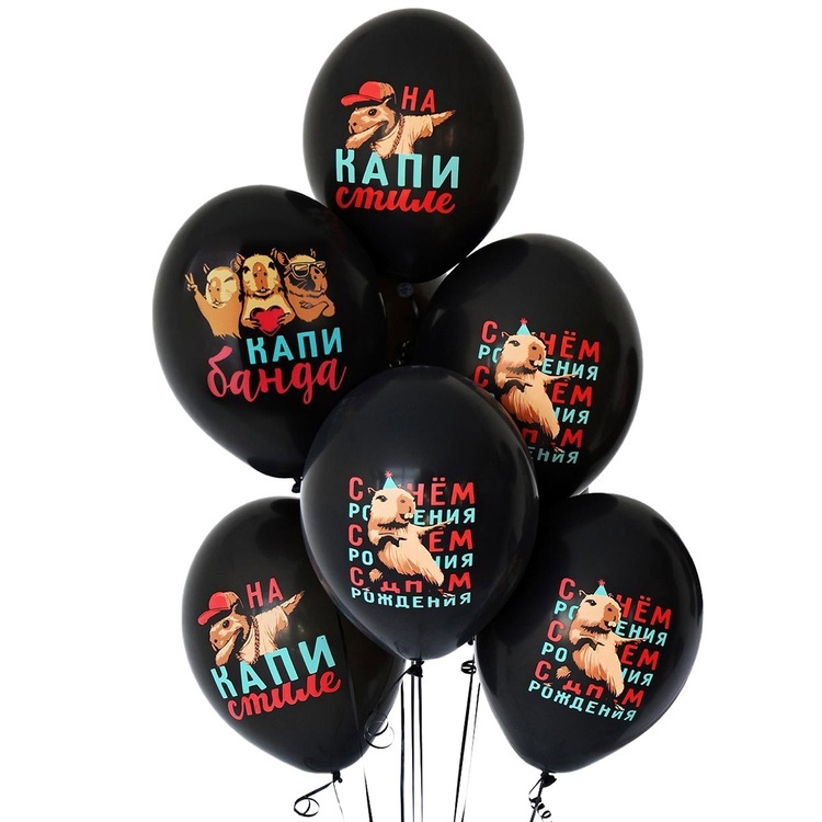 Нежные шары из качественного латекса со стильным принтом в виде капибары станет стильным акцентом вашего праздника.