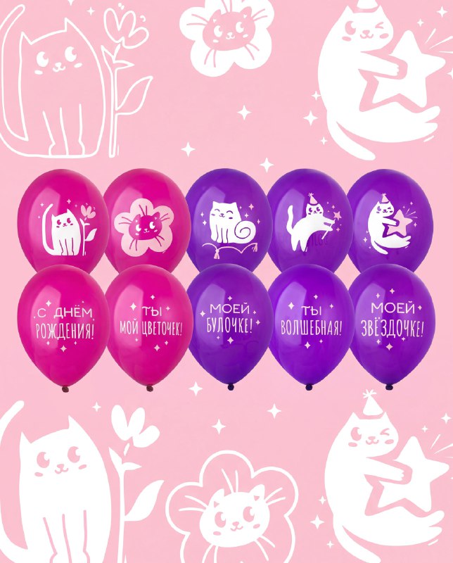 Латексный шар с изящными иллюстрациями котиков и милыми надписями создают тёплую, уютную атмосферу и украшают праздник особым очарованием.
