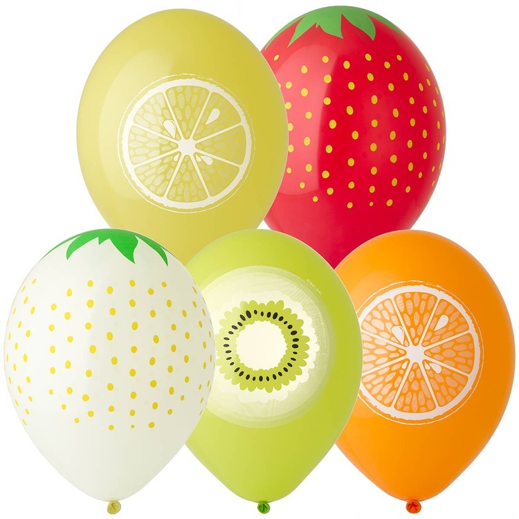 Яркий шар из качественного латекса в виде фруктов станет стильным акцентом вашего праздника. Прекрасный летний букет из апельсинов, лимонов, киви и клубники.