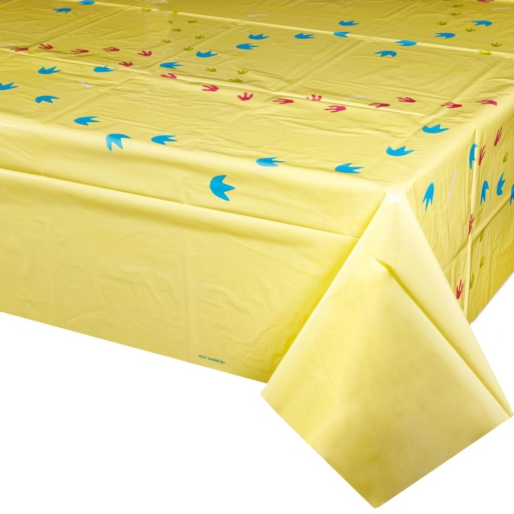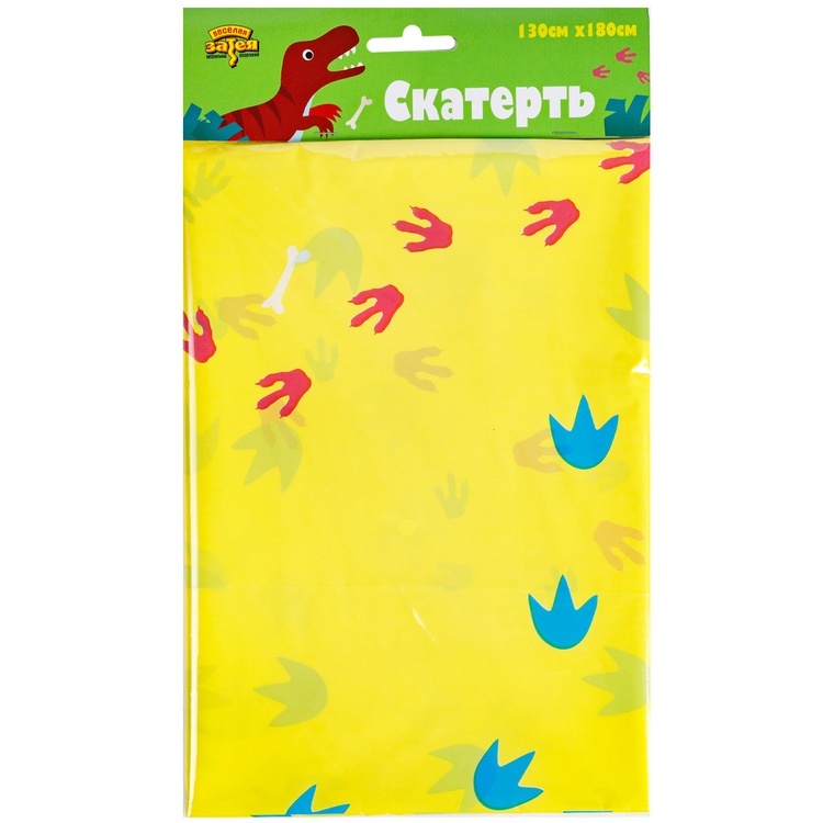 Стильная полиэтиленовая скатерть с ярким принтом «Динозаврики» со следами — идеальное решение для праздничного оформления стола. Защитит поверхность от загрязнений и придаст торжеству завершённый, красочный вид.