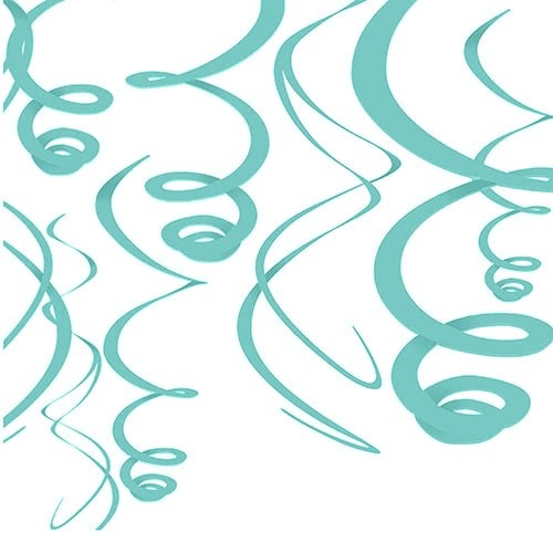 Элегантные бирюзовые спирали подойдут как для украшения однотонной вечеринки, так и свадьбы, и будут выигрышно смотреться как самост оятельно, так и в ансамбле с бумажными украшениями и воздушными шарами. В упаковке 12 спиралей длиной 55 см. Каждая спираль снабжена колечком для удобного крепления к потолку или стене.