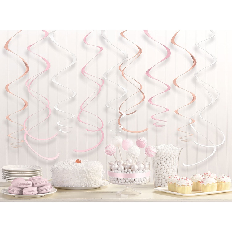 Спирали цвета розового золота и телесные подойдут как для украшения однотонной вечеринки, так и свадьбы, и будут выигрышно смотреться как самостоятельно, так и в ансамбле с бумажными украшениями и воздушными шарами. В упаковке 12 спиралей длиной 55 см. Каждая спираль снабжена колечком для удобного крепления к потолку или стене.