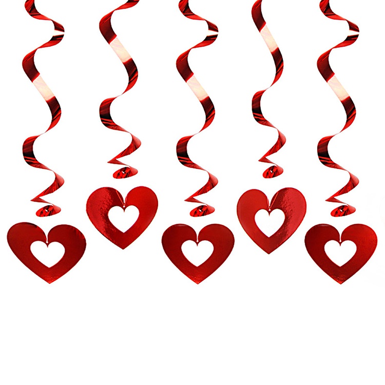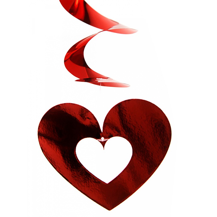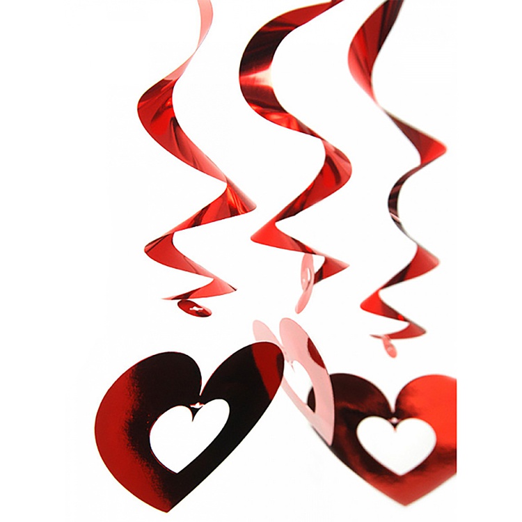 Декоративные элементы из яркой фольги в виде красных спиралей с сердцами. Эти сверкающие украшения станут прекрасным дополнением к любому интерьеру, придавая ему неповторимое очарование и атмосферу праздника.
